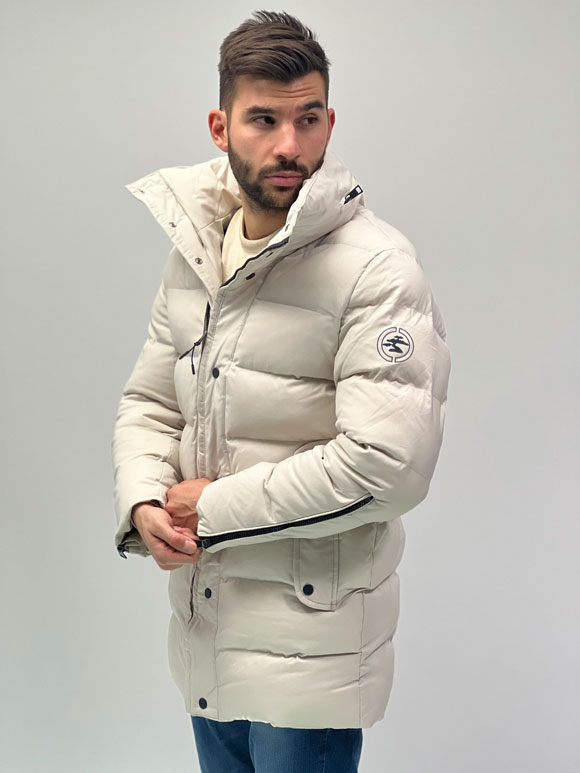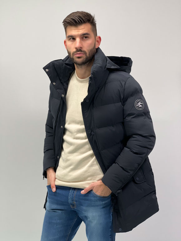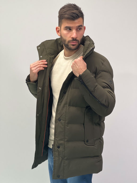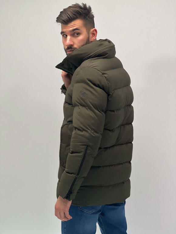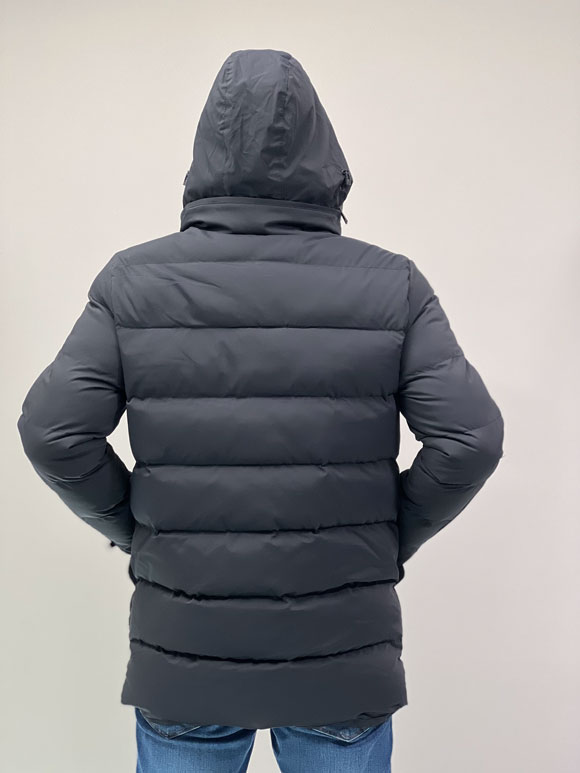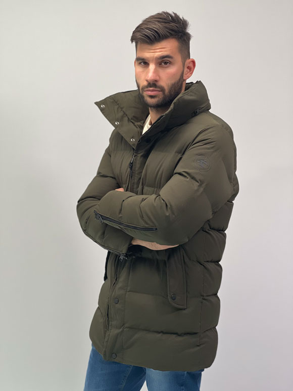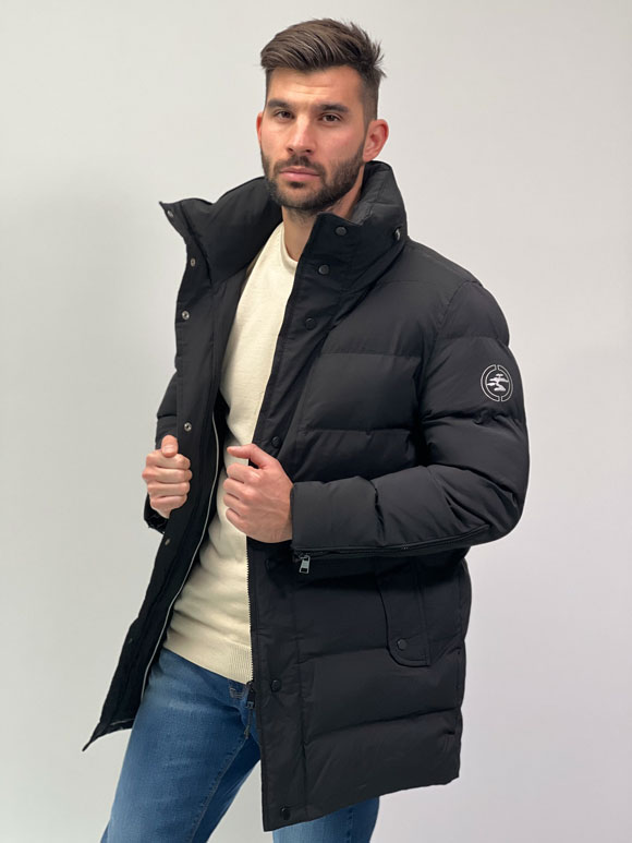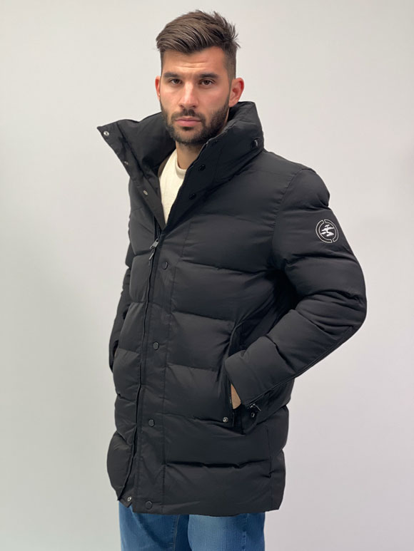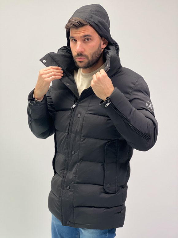 Muška duža zimska jakna pruža toplotu i stil. Džepovi sa cibzarom i preklopom na drikere kombinuju praktičnost i moderni izgled. Cipzari na rukavima omogućavaju prilagodbu stila. Kapuljača se može sakriti u kragnu za promenljive vremenske uslove. Materijal od poliestera s elastinom pruža toplotu i fleksibilnost. Ova zimska jakna spaja funkcionalnost i modu za udoban i moderan izgled tokom hladnih dana.