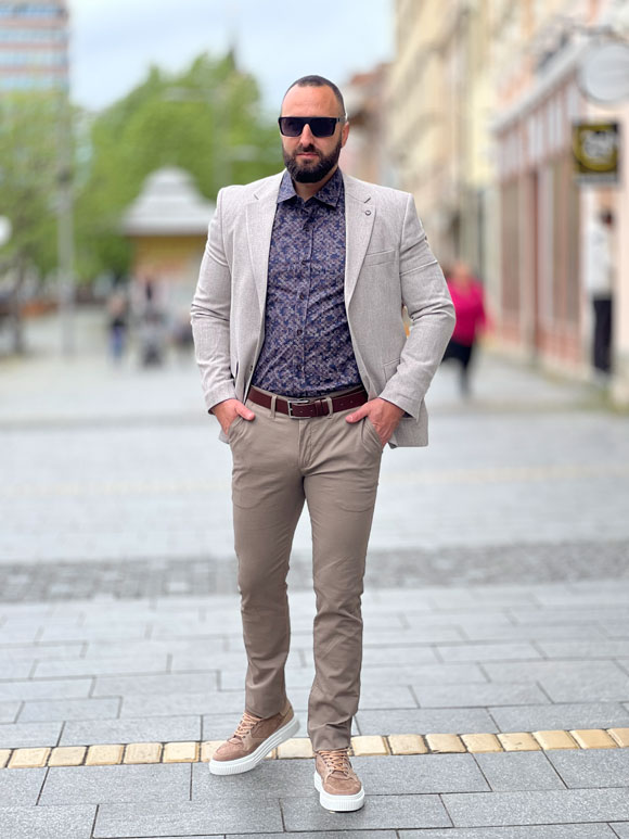 Muška košulja u tamnoplavoj boji sa braon detaljima je klasičan i elegantan komad garderobe koji istovremeno pruža udobnost i sofisticiranost. Izrađena od pamuka sa dodatkom elastina, ova košulja nudi savršenu kombinaciju mekoće i fleksibilnosti, omogućavajući slobodno kretanje dok održava oblik i stil tokom celog dana. Ova košulja je idealan izbor kako za poslovne sastanke, tako i za casual prilike, ističući vašu sofisticiranost i stilsku svest u svakoj prilici.
