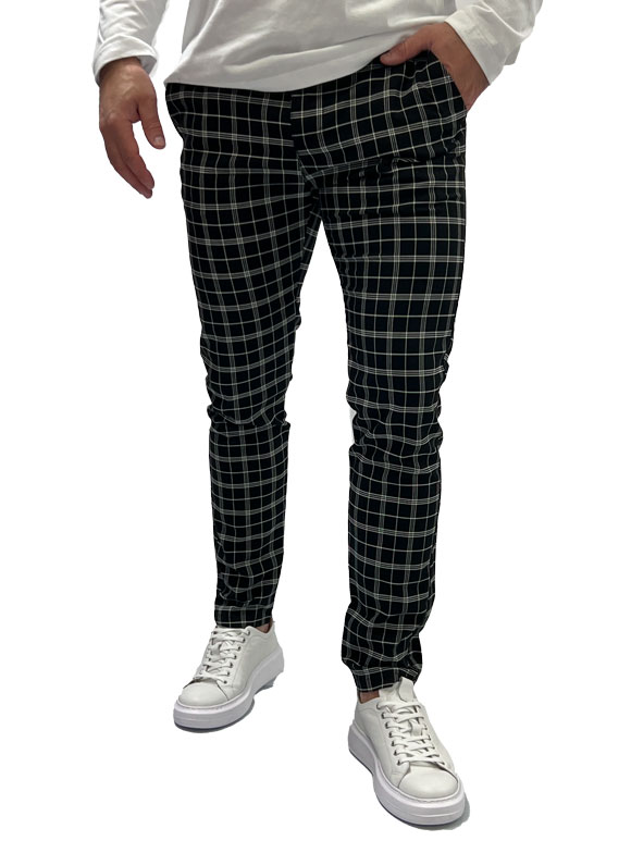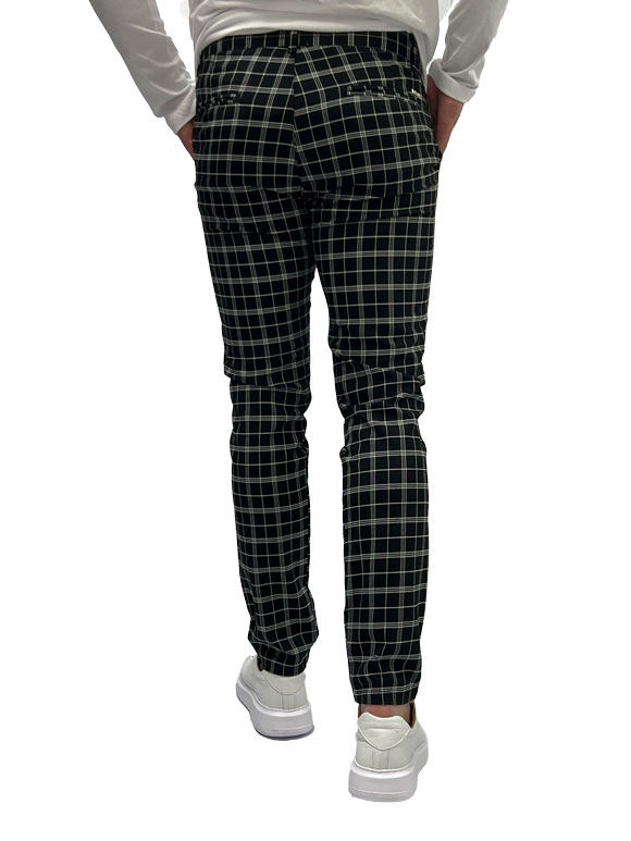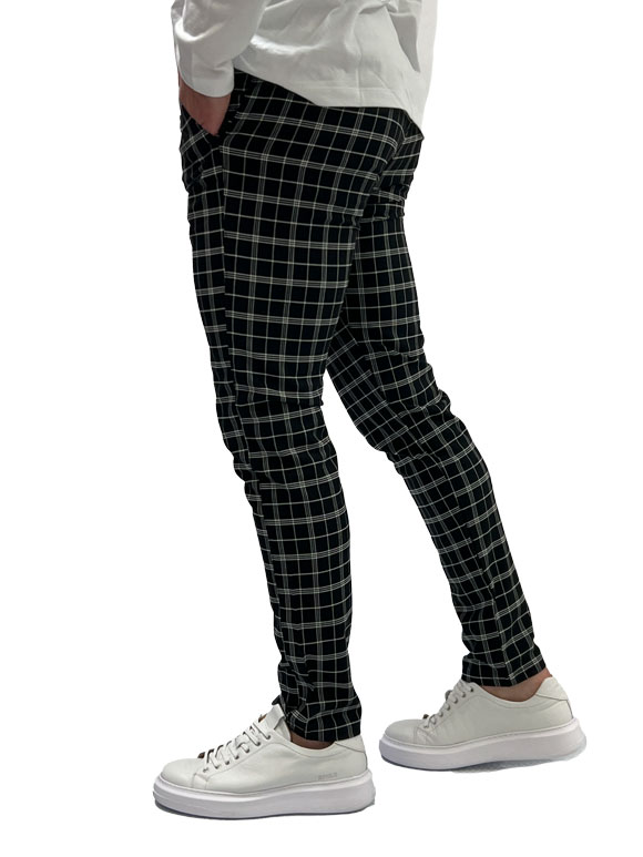 Muške pantalone crne sa belom kariranom šarom su odličan izbor za muškarce koji traže kombinaciju klasične elegancije i modernog stila. Ovaj jedinstveni dizajn čini ih savršenim za dodavanje karakterističnog dodira bilo kojoj garderobi, bilo da se radi o formalnim ili casual prilikama.