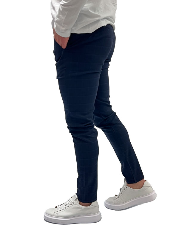Ove sofisticirane muške pantalone u dubokoj teget boji idealne su za one koji traže dodatak elegancije svojoj garderobi. Idealne za muškarce koji cene klasičan stil s modernim detaljima, ove pantalone će sigurno postati ključni deo vaše poslovne ili svečane garderobe.