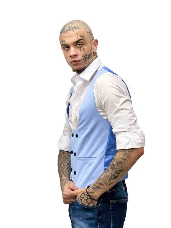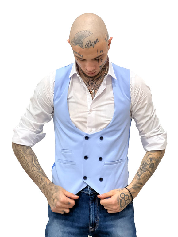Muški elegantni prsluk kombinuje sofisticiran izgled sa savremenim stilom. Odlikuje ga sastav od poliestera i likre, pružajući rastegljivost i udobnost. Dva reda dugmadi dodaju klasičan i profinjen izgled, dok džepovi donose praktičnost. Ovaj prsluk je idealan dodatak poslovnim ili formalnim kombinacijama, ističući vašu pažnju prema detaljima i želju za besprekornim izgledom.