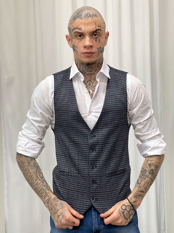 Elegantni muški prsluk od pamuka i poliamida kombinuje udobnost i stil. Sofisticiranog je kroja, prati linije tela naglašavajući figuru. Materijalna mešavina pruža prijatnost pamuka i izdržljivost poliamida. Bez rukava, omogućava slobodu pokreta i lako se kombinuje sa košuljama ili sakoima. Diskretni detalji poput dugmadi doprinose sofisticiranom izgledu. Ova boja prsluka lako se uklapa uz različite odevne kombinacije. Kvalitetna izrada i pažnja prema detaljima čine ga savršenim izborom za moderne muškarce koji cene stil i udobnost.