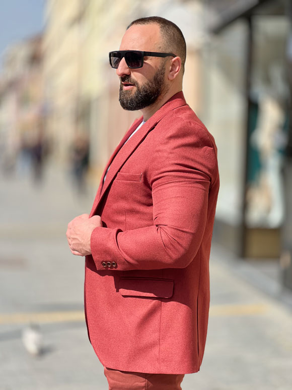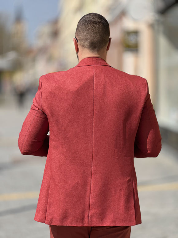 Ovaj muški sako u boji cigle predstavlja spoj klasične elegancije i modernog stila. Izrađen je od visokokvalitetne vune i viskoze, što mu pruža izuzetnu mekoću i udobnost, dok istovremeno zadržava strukturu i oblik. Boja cigle dodaje toplinu i sofisticiranost ovom sakou, ističući vašu individualnost i stil. Sako je pažljivo dizajniran s naglaskom na detalje, pružajući vam savršeno uravnotežen izgled između klasičnog i modernog. Sako ima klasičan kroj koji se besprekorno prilagođava vašem telu, ističući vašu figuru na elegantan način. Savršen je izbor za različite prilike, od poslovnih sastanaka do svečanih događaja, pružajući vam samopouzdanje i sofisticiranost.