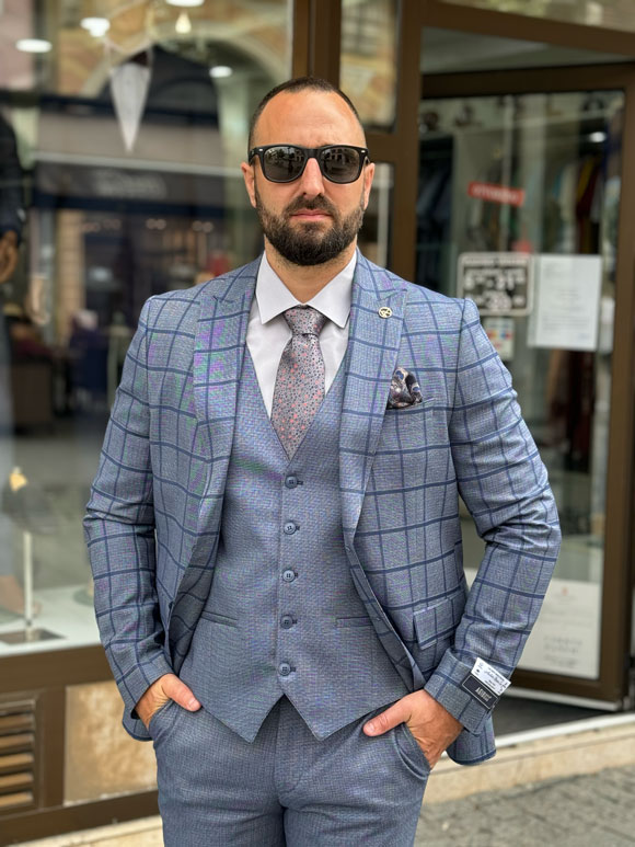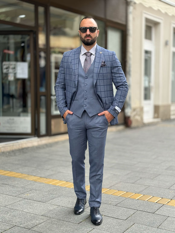 Ovo muško trodelno odelo je elegantan izbor za svaku priliku. Izrađeno od kvalitetnog materijala koji kombinuje vunu, viskozu i likru, ovo odelo pruža udobnost i istovremeno ima sofisticirani izgled. Trodelno odelo sa kariranim sakoom je klasičan komad koji će ti obezbediti stilski izgled. Sako ima hrabri karirani dezen koji daje dodatnu dozu elegancije i jedinstvenosti ovom odelu. Pantalone su krojene u modernom slim fit stilu, pristajanje uz telo na savršen način. Osim što su udobne za nošenje, pantalone imaju elastičnost zahvaljujući likri koja omogućava slobodu pokreta. Ovo trodelno odelo je pogodno kako za formalne tako i za svečane događaje. Bez obzira da li ga nosiš na poslovnom sastanku ili nekom posebnom slavlju, sigurno će te istaći sopstvenim šarmom i sofisticiranim ukusom u modi.