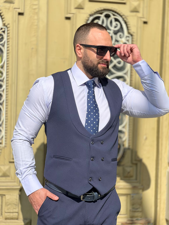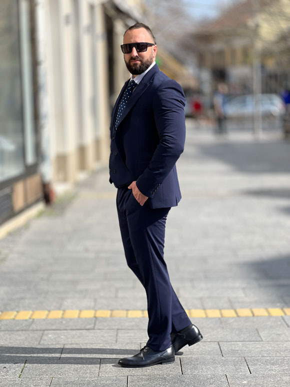 Ovo muško odelo u elegantnoj teget boji predstavlja vrhunac stila i udobnosti. Izrađeno je od visokokvalitetne vune i viskoze, kombinacija koja garantuje izdržljivost i sofisticiran izgled. Ovo teget odelo je savršen izbor za muškarce koji cene kvalitetu, stil i udobnost. Bilo da ga nosite na poslu ili za posebne prilike, ovo odelo će vam pružiti samopouzdanje i sofisticirani izgled koji će privući pažnju.