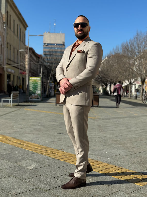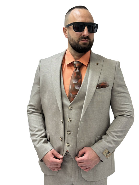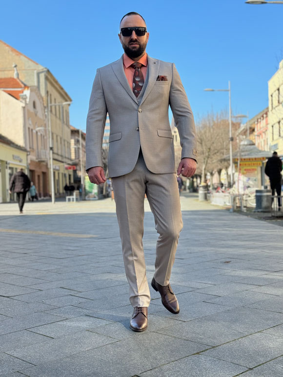 Ovo muško trodelno odelo predstavlja izuzetno sofisticiran i modern izbor, sa jedinstvenom kombinacijom boja. Izrađeno od visokokvalitetnih materijala – poliestera, viskoze i likre, ovo odelo garantuje udobnost i slobodu pokreta, dok elegantno kombinuje sivu nijansu sa belim nitima. Sako odelo pruža klasičan, a istovremeno moderan izgled, sa pažljivo izrađenim detaljima. Prsluk dodaje dodatnu dimenziju, ističući eleganciju i doprinoseći celokupnom dojmu odelo, dok klasično krojene pantalone obezbeđuju udobnost tokom celodnevnog nošenja.