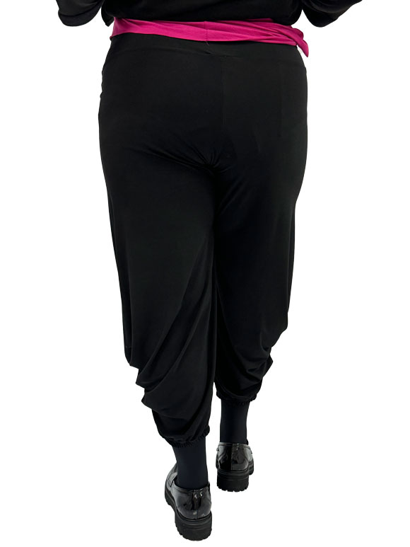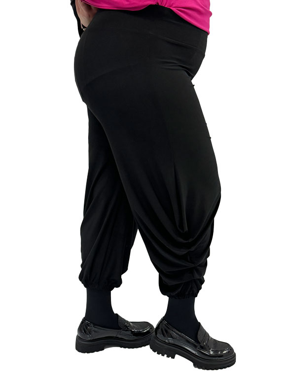 Plus size ženske pantalone su izuzetno udoban izbor, a istovremeno odišu stilom. Izrađene od mešavine akrila i likre, ove pantalone pružaju mekoću, rastegljivost i savršeno pristajanje. Crna boja dodatno naglašava eleganciju i univerzalnost ovog komada garderobe. Guma na donjem delu pantalona dodaje moderni i opušteni dodir, omogućavajući im da ležerno padaju i istovremeno čineći ih svestranim za različite prilike. Ove plus size pantalone su idealan izbor za ženu koja želi udobnost, ali ne želi da žrtvuje stil, pružajući joj savršenu ravnotežu između moda i komfora.