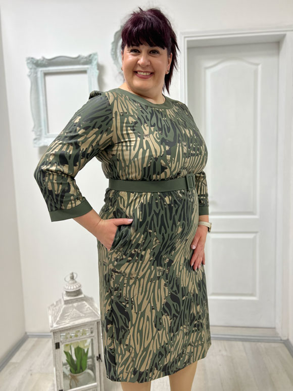 Plus size ženska haljina sa 3/4 rukavima predstavlja spoj udobnosti i elegancije. Ova haljina je pažljivo dizajnirana kako bi naglasila tvoje obline i pružila sofisticiran izgled. Rukavi dužine 3/4 često dodaju notu elegancije i prilagodljivost za različite prilike. Pojas oko struka omogućava prilagođavanje kroja prema tvojoj figuri, ističući struk i dodajući ženstveni dodir. Haljina je prosarana svetlijom bojom, što joj daje dodatnu dimenziju i vizualni interes. Ovaj detalj čini haljinu živopisnom i privlačnom, čineći je pogodnom za različite prilike. Izrađena od viskoze, poliamida i likre, ova haljina pruža mekoću i udobnost, dok istovremeno omogućava haljini da lepo prati linije tvoje figure. Materijali su izuzetno prijatni na dodir, čineći haljinu prikladnom za duže nošenje. Ova plus size haljina je idealna za posebne prilike, večernje izlaske ili bilo koji trenutak kada želiš izgledati elegantno i sofisticirano.