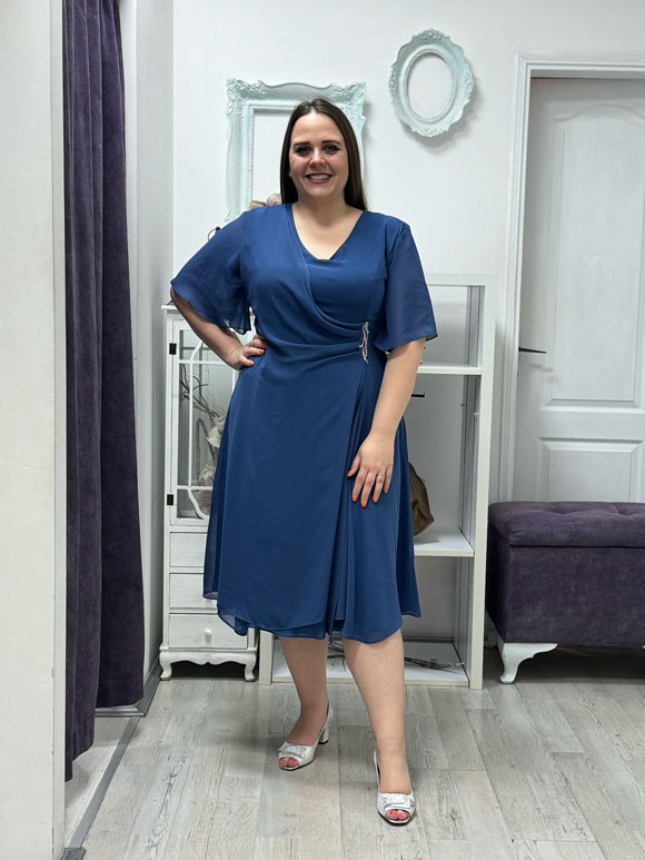 Ova prelepa haljina u plus size veličini je savršen izbor za dame koje vole udobnu, a istovremeno elegantnu odeću. Izrađena od laganih til materijala, ova midi halina dolazi sa kratkim rukavima koji pružaju udob i slobodu pokreta. Dizajn haljine je paljivo osmišljen da istakne žensku figuru, uski struk i blago šireći se ka donjem delu kako bi pružio lešav i elegantan izgled. S obzirom na to da je u plus size veličini,ova haljina će se idealno uklopiti sa oblinama, istremeno dajući dovoljno prostora za udobnost tokom nošenja.