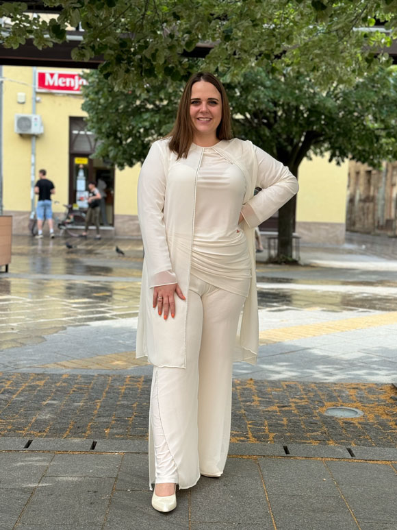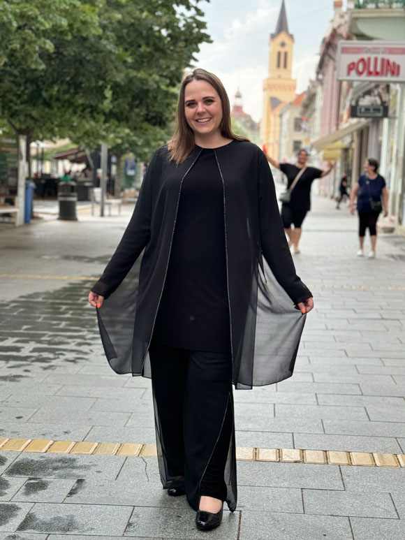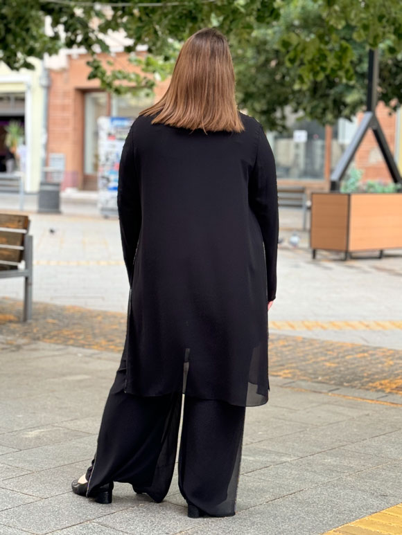 Ovaj ženski komplet u plus size veličini je savršen izbor za udoban, a istovremeno moderan i elegantan izgled. Napravljen od lagane tkanine, ovaj komplet se sastoji od pantalona visokog struka i duge til tunike. Ovaj komplet je idealan za dnevne ili večernje kombinacije, možeš ga nositi sa sandalama ili patikama za opušteni izgled ili upariti sa štiklama za sofisticiraniji izgled.