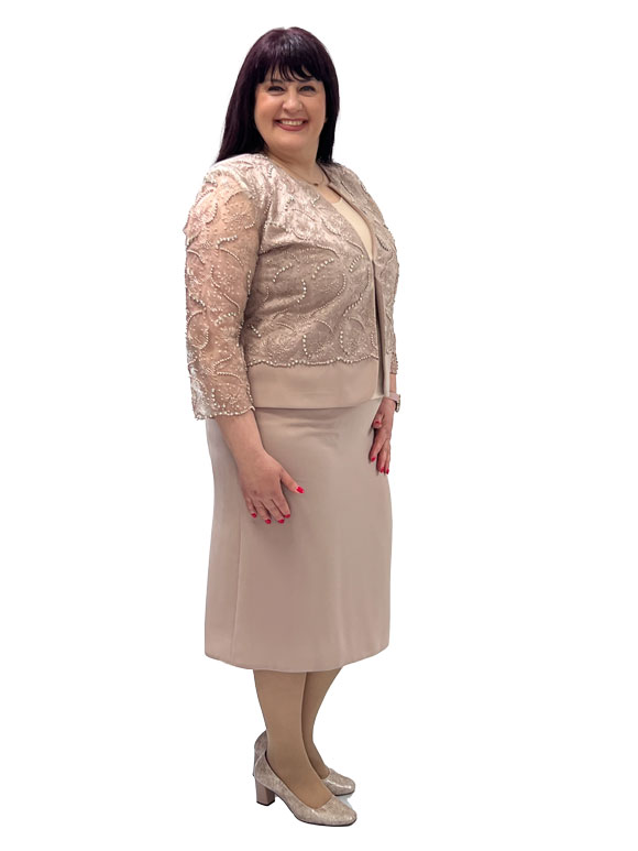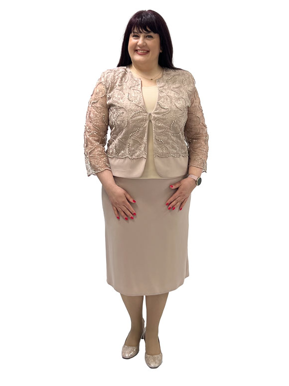 Ovaj ženski plus size komplet nudi savršenu kombinaciju elegancije, udobnosti i stila, idealan za moderne dame koje cene sofisticiranost i udobnost. Izrađen od visokokvalitetnog poliestera, ovaj komplet osigurava trajnost i lako održavanje. Ovaj komplet je savršen izbor za žene koje traže kombinaciju elegancije, udobnosti i stila u jednom kompletu. Kombinacija sakoa, suknje i bluze od poliestera pruža besprekoran izgled koji će svaku ženu učiniti samopouzdanom i sofisticiranom u svakoj prilici.