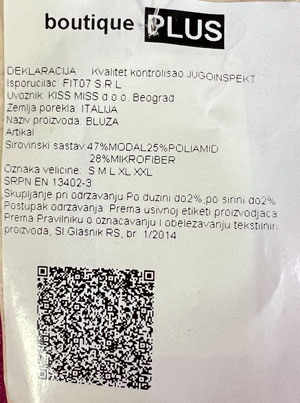 Ova ženska plus size bluza je savršena za dame koje žele da se osećaju udobno i stilizovano. Pruža idealno prilagođavanje figuri, ističući vaše atribute na najlepši način. Ova bluza dolazi u univerzalnoj veličini koja odgovara do broja 50, obezbeđujući dovoljno prostora za udobnost tokom nošenja. Izrađena je od visokokvalitetnog materijala – modal, poliamid,mikrofiber, koji pruža mekoću, glatkoću i elastičnost. Ova bluza je posebno dizajnirana da ističe vaš stil, bez obzira na vašu veličinu. Može se kombinovati sa raznim komadima garderobe i dodacima, što vam omogućava da je nosite i za casual i za formalne prilike.
