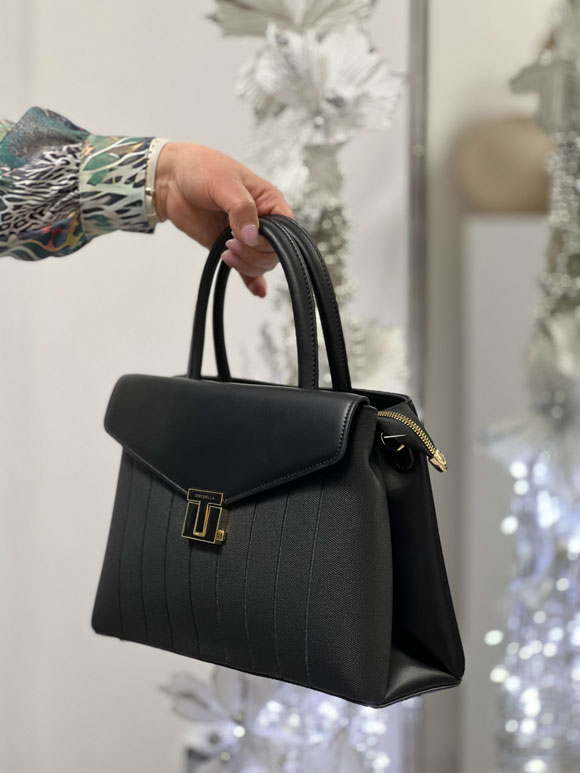 Crna elegantna poslovna torba za dame sa stilom savršeno kombinuje eleganciju i funkcionalnost. Klasična crna boja je univerzalna i lako se uklapa u različite odevne kombinacije. Torba je pažljivo dizajnirana s naglaskom na organizaciju, nudeći odličan sistem pregrada i džepova. Ovaj praktičan organizator čini torbu idealnom za poslovne dame koje žele održati urednost. Materijal torbe je izdržljiv, pružajući sofisticiran izgled.