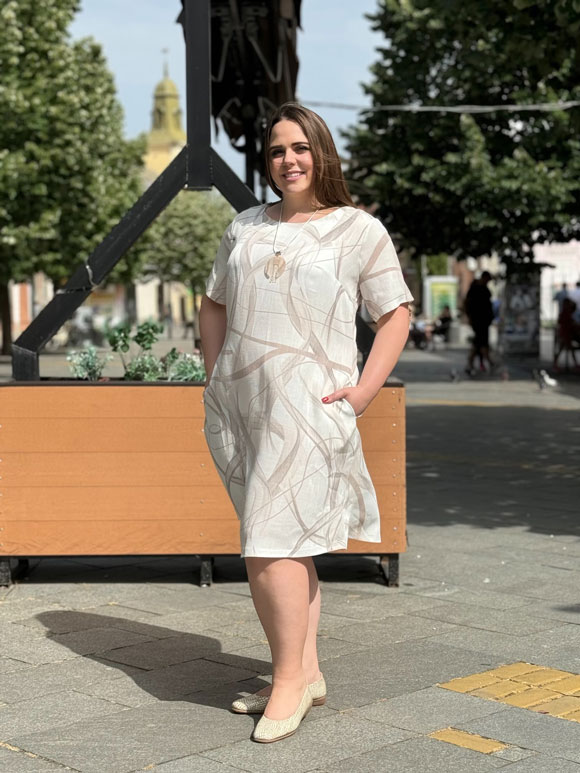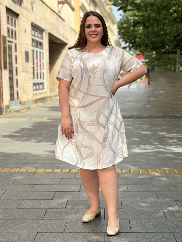 Ova ženska plus size haljina je savršen izbor za udoban, ali i stilizovan izgled. Dizajnirana u sirem kroju, ova haljina će naglasiti vaše obline na najlepši mogući način. Izrađena od mešavine pamuka i likre, ova haljina pruža optimalnu udobnost tokom celog dana. Pamuk garantuje mekoću i prijatnost, dok dodatak likre omogućava elastičnost materijala koji se prilagođava vašem telu. Jedan od praktičnih detalja ove haljine su i dzepovi, koji su ne samo funkcionalni već i dodaju jedinstvenost ovom komadu odeće. Možete koristiti dzepove za sitnice koje želite da imate pri ruci ili ih jednostavno koristiti kao dekorativni element. Kratak rukav je idealan za tople dane ili kada želite da pokažete svoje ruke. Pruža slobodu pokreta uz istovremeno donošenje svežeg izgleda. Dužina do kolena je savršena za dame koje vole malo više pokrivenosti ili preferiraju odevne kombinacije sa duže duge čiji se elegantni presek nalazi upravo na ovom delu tela. Ova plus size haljina ne samo da prati trendove već će vam sigurno doneti samopouzdanje i eleganciju bez obzira na priliku koju nosite. Iskoristite svoju unikatnost i nosite ovu haljinu sa ponosom!