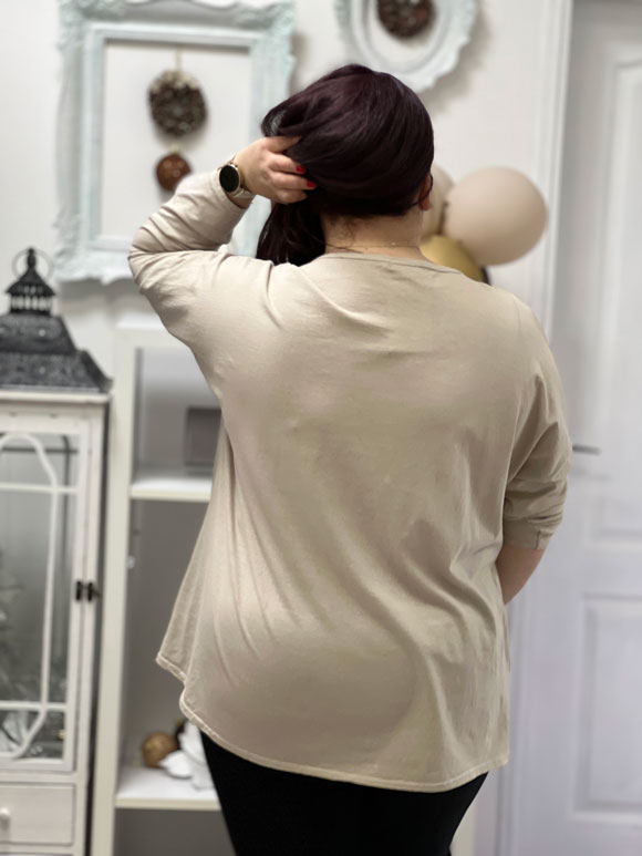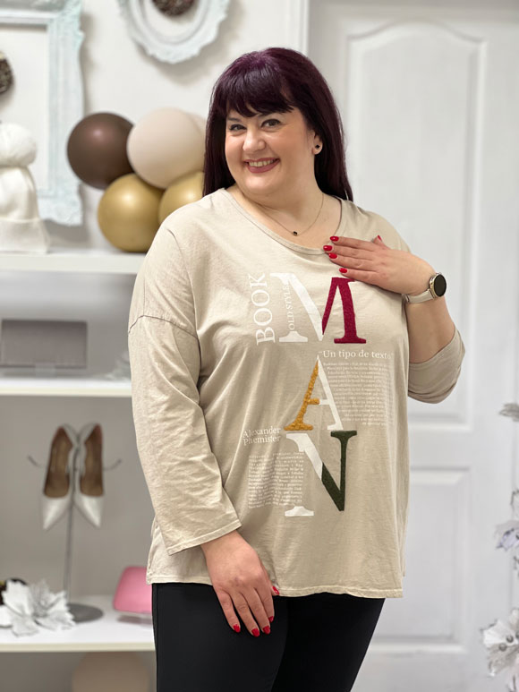 Ova ženska bluza je dizajnirana posebno za dame veličine od 46 do 52, pružajući udobnost i stil bez obzira na vaš obim. Bluza je univerzalne veličine i prilagođava se različitim telima, pružajući vam pravilan fit i sigurnost. Izrađena od visokokvalitetnog pamuka sa malo elastina, ova bluza kombinuje prirodne osobine pamuka sa elastičnošću elastina. To znači da ćete imati udobnost i prozračnost materijala, dok će elastin obezbediti potrebnu fleksibilnost i pokretljivost. Osećaćete se slobodno i udobno tokom celog dana. Bluza ima prelepu aplikaciju na prednjoj strani koja pruža dodatni šarm i interesantne detalje. Ova bluza je veoma praktična, jer se može nositi uz razne donje delove odeće poput helanki, pantalona ili farmerica.