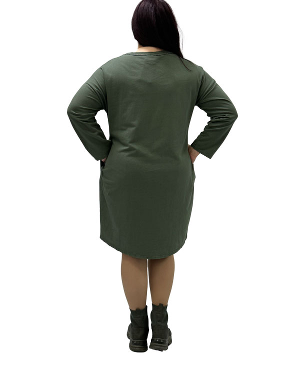 Ova ženska haljina plus size je izuzetan izbor koji kombinuje stil, udobnost i sofisticiranost. Napravljena od pamuka sa dodatkom malo elastina, ova haljina pruža prirodnu mekoću pamuka uz dovoljno elastičnosti da se prilagodi vašem obliku. Univerzalna veličina, koja odgovara brojevima od 46 do 50, čini ovu haljinu pristupačnom i prilagodljivom različitim figuarama. Klasičan kroj i udobnost materijala čine je savršenom za svakodnevno nošenje, dok istovremeno odiše šarmom i elegancijom. Lepa aplikacija napred dodaje dozu posebnosti ovoj haljini, čineći je vizuelno atraktivnom i privlačnom.