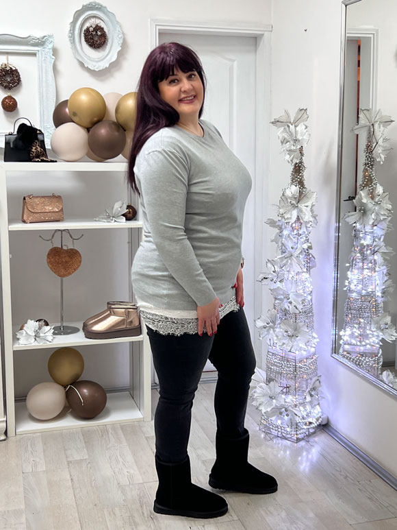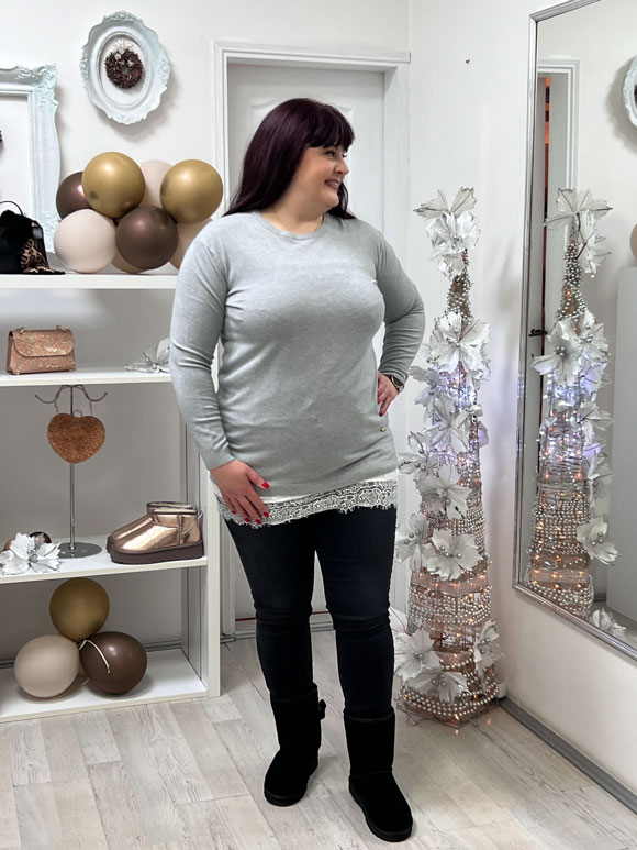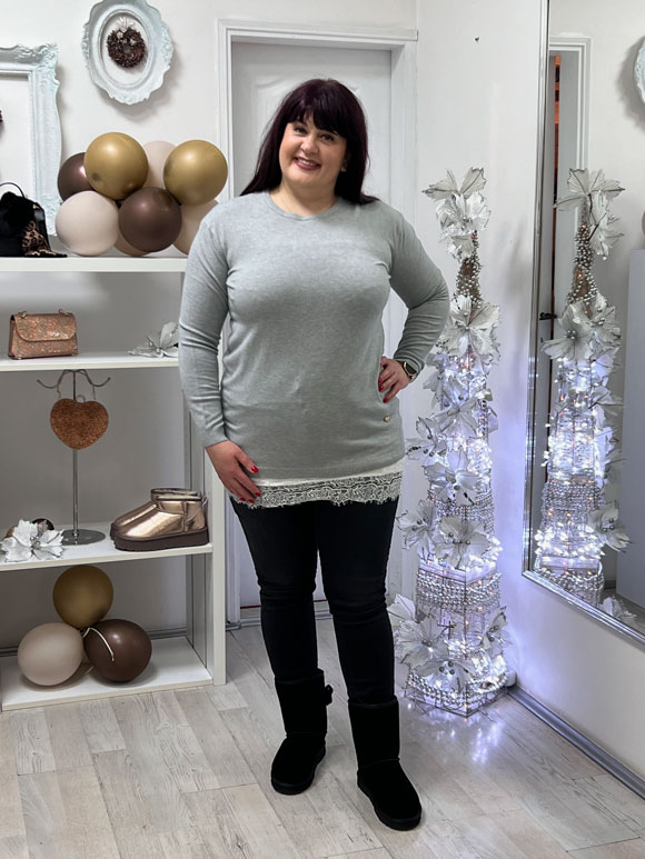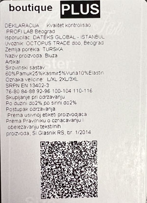 Ova ženska siva bluza je savršen izbor za punije dame koje žele da se osećaju udobno, ali i da izgledaju stilizovano. Bluza je dizajnirana posebno za plus size figure, pružajući udobno i dobro pristajanje svim damama. Univerzalna veličina ove bluze omogućava da se nosi sve do broja 60, pružajući širinu i prostor koji su potrebni za udobnost tokom celog dana. Bluza je izrađena od mešavine materijala – pamuk, kašmir, vuna i elastin, što joj pruža kombinaciju mekoće, udobnosti i elastičnosti. Može se nositi casual uz farmerke i patike ili se može stilizovati za elegantniji izgled uz suknju ili pantalone.