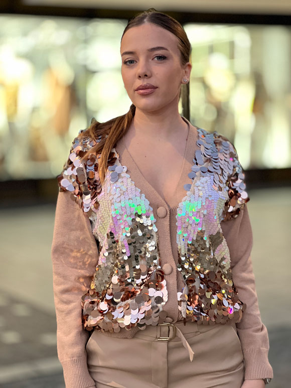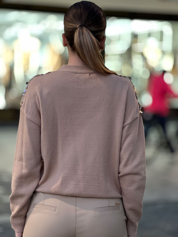 Ova ženska bluza dugih rukava spaja eleganciju i unikatan dizajn. Kopča se pomoću dugmadi, pružajući klasičan izgled s dozom sofisticiranosti. Poseban pečat dodaju ukrasi na prednjoj strani koji pružaju bluzi originalan i izražajan karakter.