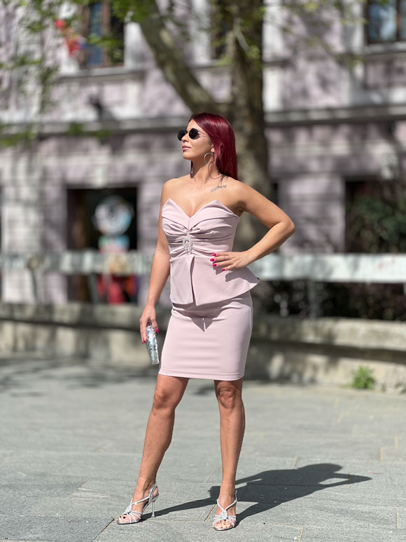 Ova ženska mini haljina je stvorena da očara svojom jednostavnošću i elegancijom. Izrađena je od visokokvalitetnog materijala koji kombinuje poliester, viskozu i elastin, pružajući udobnost, fleksibilnost i izdržljivost. Sa svojim V-izrezom dekoltea, naglašava ženstvenost i eleganciju, pružajući sofisticiran izgled. Dodatni detalj koji je ističe je šnala na sredini, koja dodaje suptilan naglasak na struk, stvarajući moderno oblikovan izgled. Ova haljina je savršen izbor za svečane prilike, večernje izlaske ili druge posebne događaje, te će svakako privući pažnju svojom lepotom i stilom.