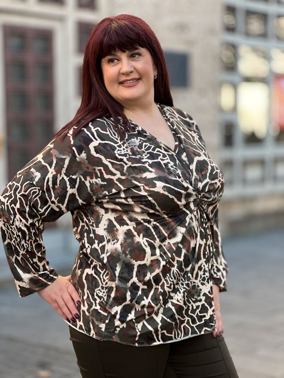 Ženska bluza u univerzalnoj veličini „big size“ s printom donosi spoj udobnosti i stila. Izrađena od viskoze i poliestera, bluza kombinuje mekoću viskoze s izdržljivošću poliestera, čineći je udobnom za nošenje i istovremeno lako održivom. Dugi rukavi čine ovu bluzu prikladnom za hladnije dane, a V izrez dodaje ženstvenu notu, naglašavajući dekolte. Univerzalna veličina pruža slobodu pokreta i prilagođava se različitim oblicima tela.
