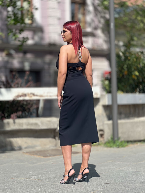 Ova ženska uska haljina predstavlja savršen spoj elegancije i udobnosti, izrađena od visokokvalitetnog poliesterskog materijala. Materijal pruža haljini glatku teksturu i postojanost boje, dok istovremeno omogućava udobno nošenje tokom celog dana. Haljina ima usku siluetu koja se prilagođava liniji tela, ističući ženstvene obline na elegantan način. Deblje bretele pružaju dodatnu podršku i udobnost, istovremeno dodajući sofisticiran izgled haljini. Srebrna snala na leđima dodaje elegantan detalj haljini, ističući leđa i dodajući dozu sjaja i glamura. Ova haljina je savršen izbor za večernje izlaske, koktele ili posebne prilike, ističući ženinu eleganciju i stil. Sa svojim modernim dizajnom i kvalitetnom izradom, ova haljina će vam pružiti samouverenost i privlačnost gde god da je nosite.