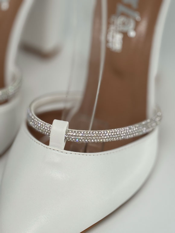 Ove ženske bele špic sandale su savršen spoj elegancije i raskošnog detalja. Sa zatvorenim prednjim delom, ove sandale pružaju dodatnu podršku i udobnost tokom nošenja, čineći ih idealnim izborom za sve prilike, od formalnih događaja do opuštenih večeri. Glavni dekorativni detalj je kaiš ukrašen cirkonima, koji pruža dodatni sjaj i sofisticiranost ovim sandalama. Cirkoni dodaju blistavost svakom koraku i ističu vašu eleganciju, čineći ove sandale posebnim i privlačnim. Bez obzira da li ih nosite uz haljinu, suknju ili pantalone, ove sandale će vas istaknuti u svakoj prilici i privući poglede svojom lepotom i sofisticiranošću.
