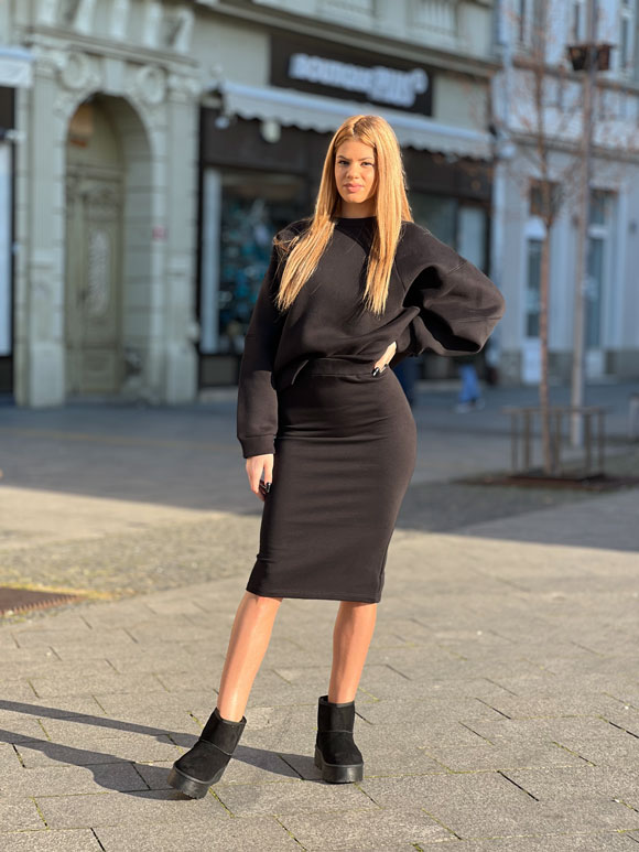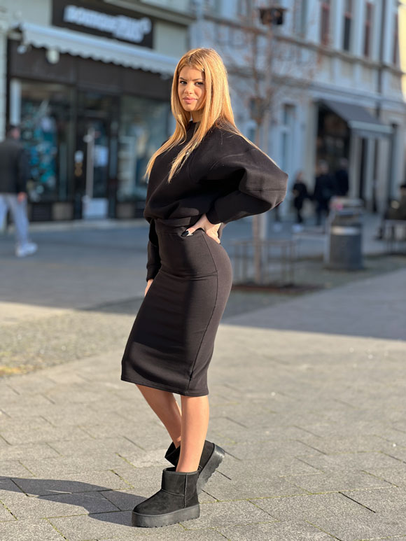 Crni ženski duks predstavlja savršenu kombinaciju stila i udobnosti. Izrađen od pamuka i poliestera, ovaj duks pruža mekan osećaj pamuka uz dugotrajan karakter poliestera. Klasična crna boja čini ovaj duks svestranim i lako kombinovanim uz različite stilove. Moderan kroj pruža opušten izgled, čineći ga idealnim za casual odevne kombinacije ili sportske aktivnosti.
